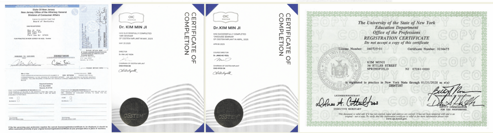 - Licensed dentist in New York, New Jersey, and Massachusetts, plus Korea